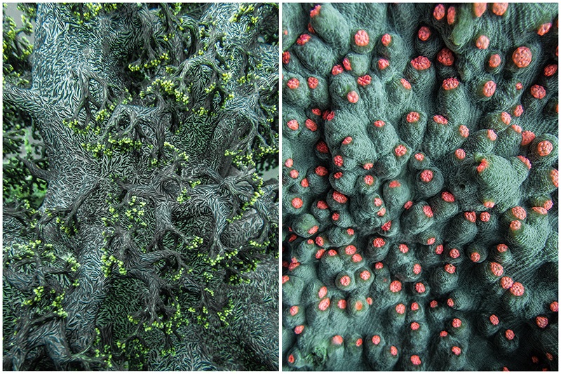 ‘Flower Animals’ is an ongoing exploration and compilation on corals and how they defy the three natural categories: animal, plant, mineral. Eventually, microscopes revealed that corals are animals made up of thousand soft-bodied structures called polyps – its living skin. An organised beauty is then created by simple organisms while interacting together in a complex way, creating sophisticated structures with all kind of patterns, textures, shapes, forms, colours and sizes. But what excites me the most is similarities with humans. Unlike any other form of life on Earth, except us, corals have the capacity to build their own environments and habitats. They bring to my mind human cities, how they elaborate and create infrastructures to live within them.